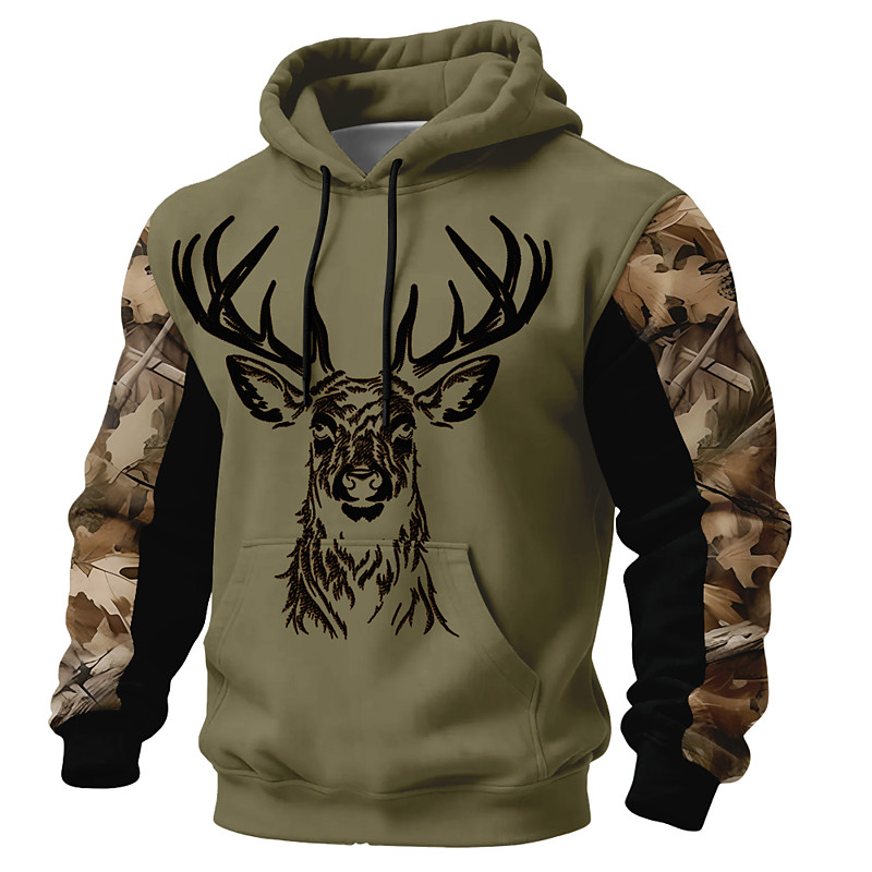Men's Deer Hoodie Sweatshirt Fashion Classic Crew Neck Outdoor Hunting Black Brown Khaki Brown 2 Drawstring Fall Winter Designer S M L XL XXL XXXL