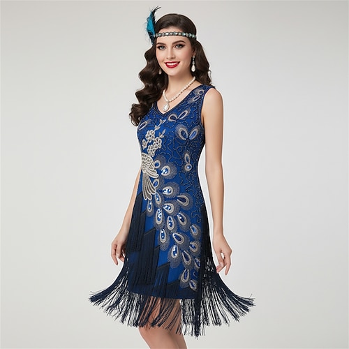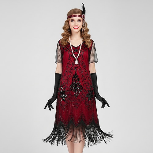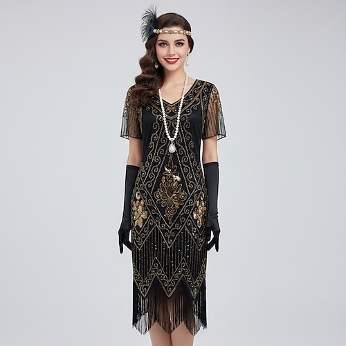 Anni Ruggenti Anni 1920 Abito da cocktail Midi Abito Flapper Vestito Abito da Ballo Normale Maniche corte Il grande Gatsby Charleston Paillettes Scollo a V Costume Per donna Carnevale Mascherata