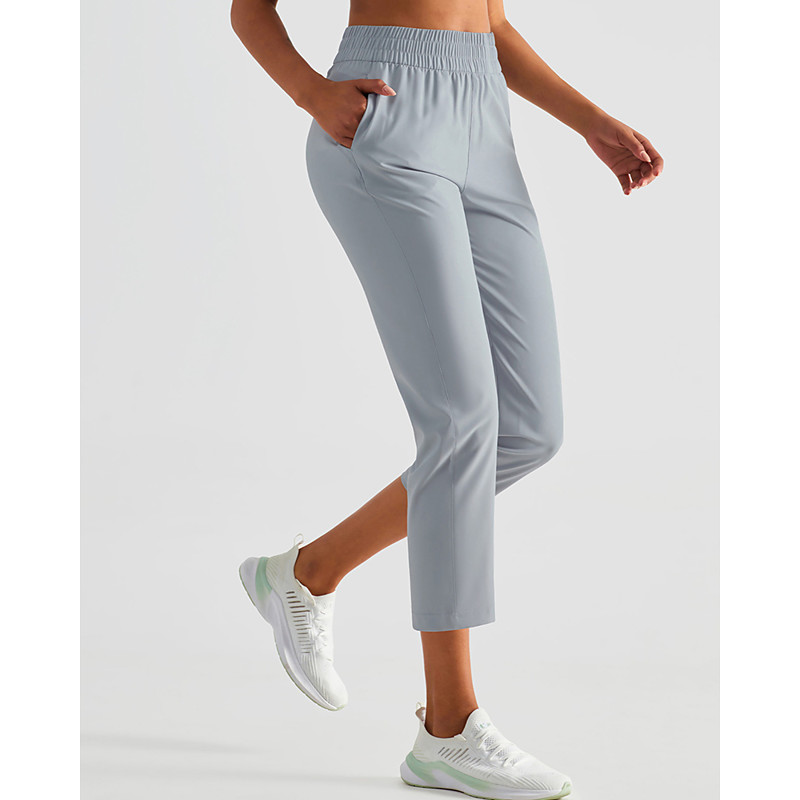Women's Pilates Pants Yoga Pants Capri Pants with Pockets Lightweight High Waist Gym Pilates Zumba Bottoms Solid Color Khaki Grey Fall Sports Activewear Micro-elastic Loose Fit