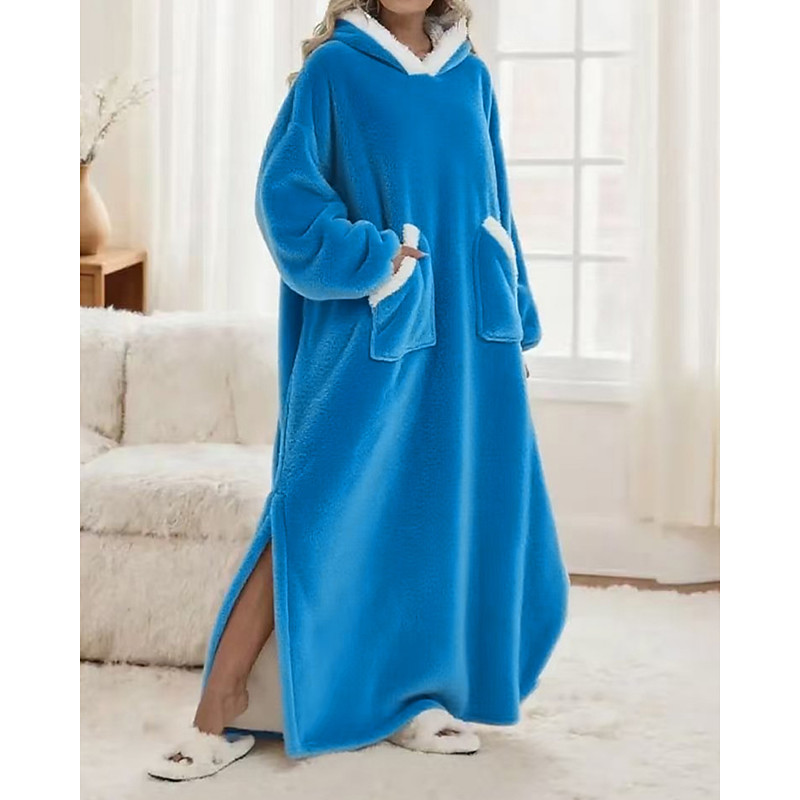 Women's Pajamas Loungewear Flannel Warm Fashion Wearable Blanket Hoodie Pure Color Pocket Home Daily Bed Long Sleeve Hoodie Black Navy Blue Royal Blue Green Light Grey Fall Winter Loose Fit