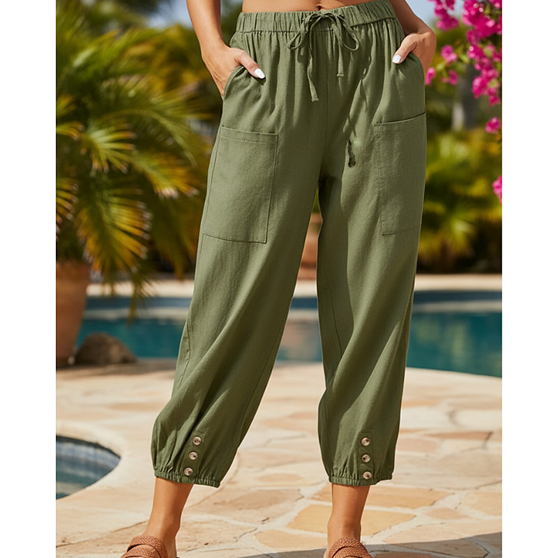 Women's Cotton Linen Pants Chinos Streetwear Casual Full Length Medium Waist Plain Drawstring Pocket Comfortable Inelastic Daily Outdoor Vacation Blue Grey Black White Summer Spring Loose Fit