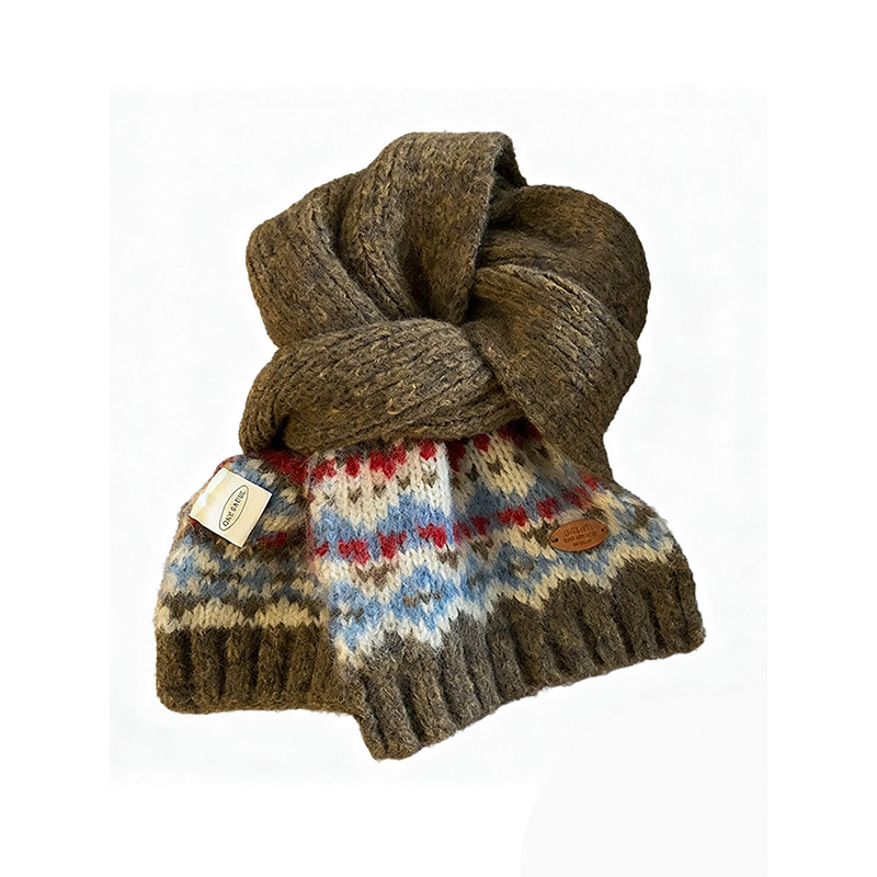 sciarpa natalizia da donna lavorata a maglia: morbida e accogliente, motivo Fair Isle, colori assortiti, perfetta per le feste e come regalo invernale