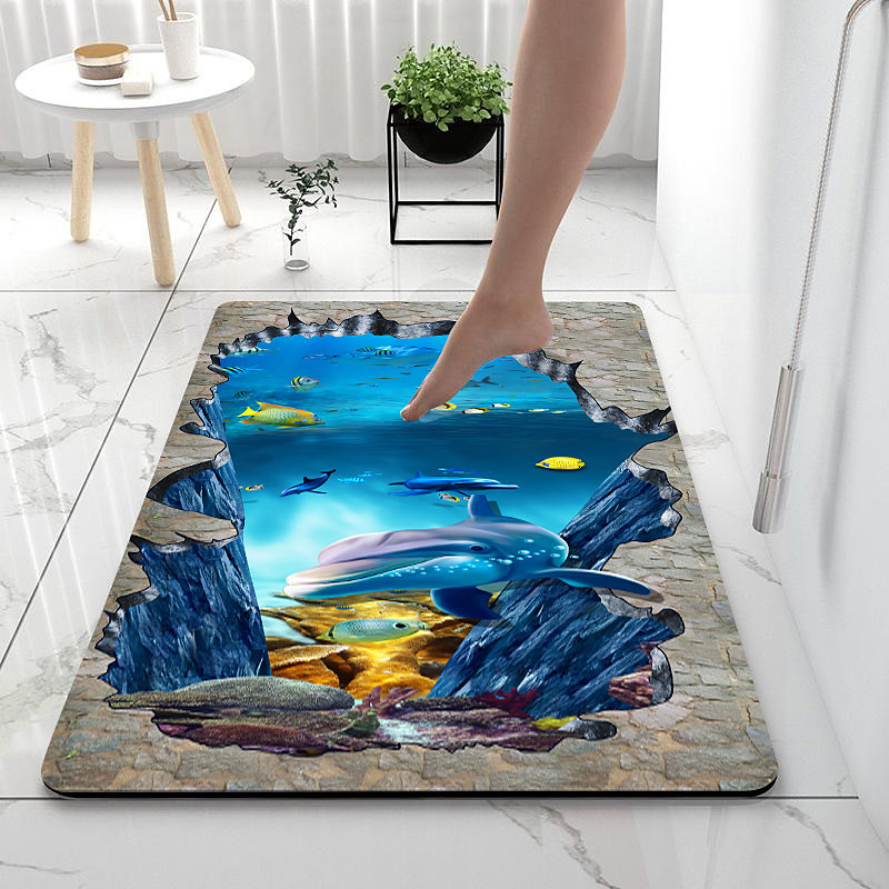 Diatomaceous Earth Bath Mat 3D Seaworld Super Absorbent Bathroom Rug Door Mat New Design