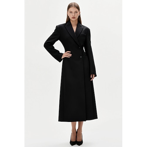 Per donna Abito da smoking Linea ad A Matrimonio Formale Tessuto Elasticizzato Elegante Manica Lunga Midi Lunghezza Tè Risvolto a punta Doppiopetto