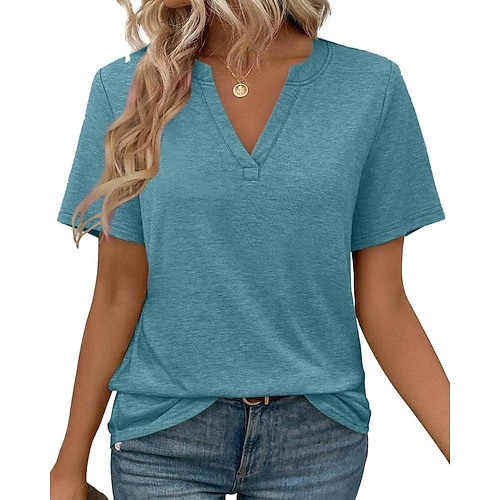 Per donna Maglietta Semplice Moda Classico Casual Manica Corta Scollo a V Top Regolari Quotidiano Uscire Weekend Nero Bianco Rosa Viola Verde Estate Primavera