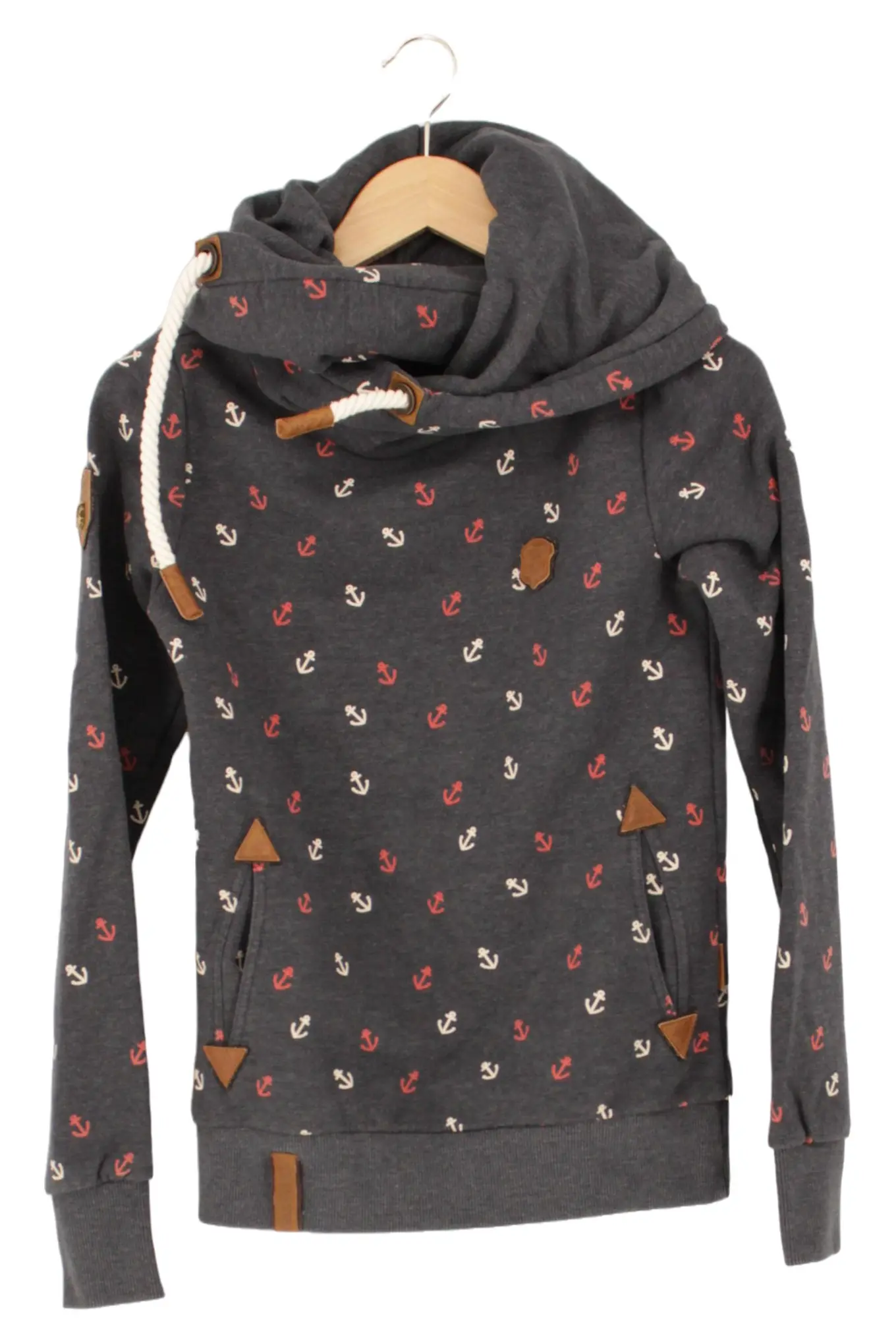 NAKETANO Damen Hoodie Grau Anker Print Größe S Casual Look