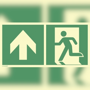 Notausgang links Pfeil oben, Kombi, ISO 7010, PVC-U selbstkl.,160-mcd, 297x148mm