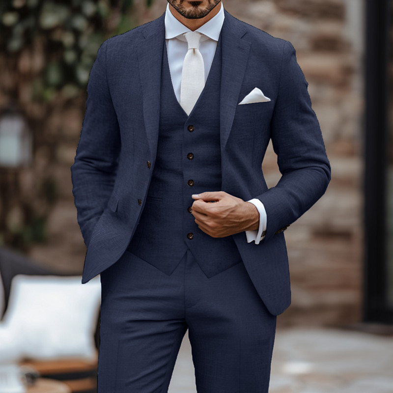 Men's Wedding Party Evening Wear Linen Suits Notch Lapel White Pink Fashion Business Solid Colored Slim Fit 3 Piece Single Breasted Two-buttons