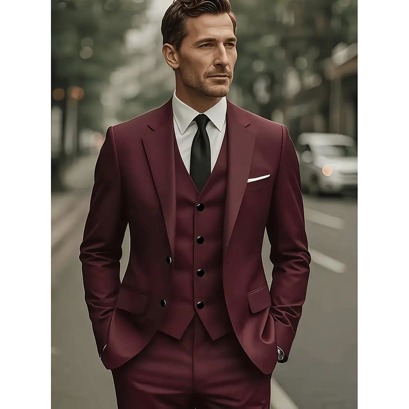 Men's Wedding Winter Wedding Suits Notch Lapel Red Party Formal Solid Colored Standard Fit 3 Piece Single Breasted One-button