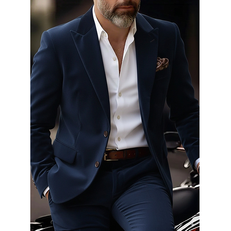 Men's Wedding Casual Business Velvet Suits Peaked Lapel Black Brown Daily Formal Solid Colored Tailored Fit 2 Piece Single Breasted Two-buttons