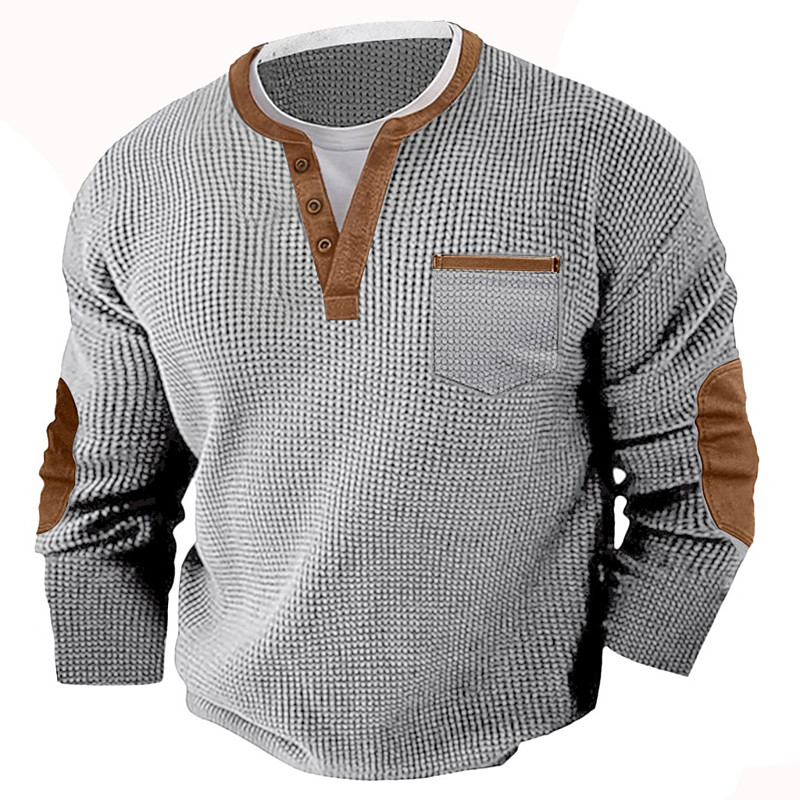 Men's Waffle Tee Waffle Henley Shirt Long Sleeve Henley Fall Spring Fall Solid Color Fashion Basic Henley Fake two piece Vacation Home Office Black Gray Navy Blue Top Tee for Men