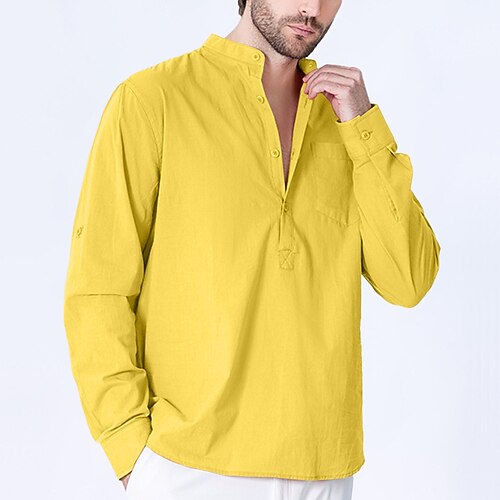 Per uomo Camicia Camicia con colletto alla coreana Camicia popover Camicia casual Nero Bianco Giallo Blu reale Azzurro cielo Manica Lunga Semplice Henley Vacanza Quotidiano Tasca Frontale