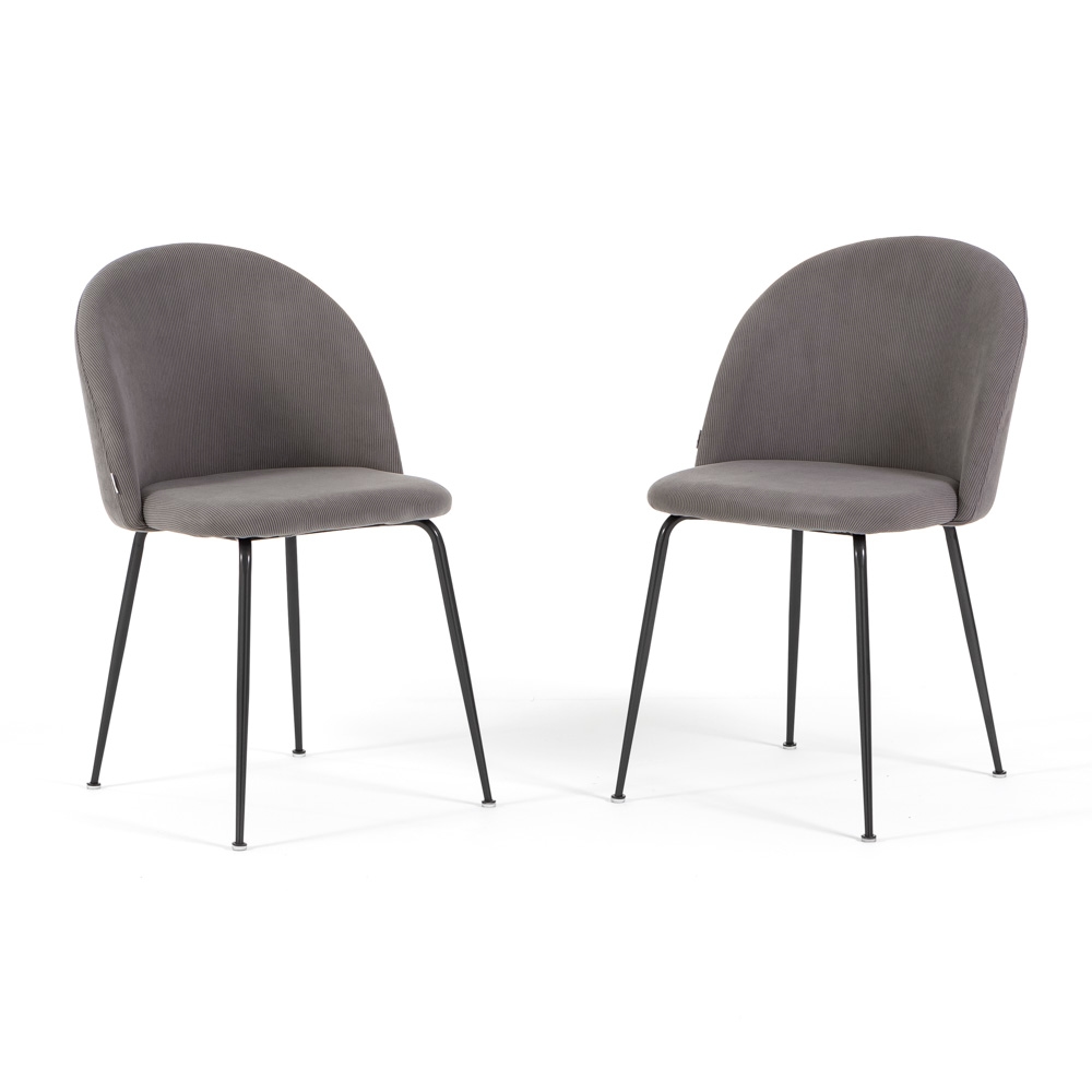 RATTATAN Set aus 2 Innenstühlen aus Cordsamt mit Metallbeinen, gepolstert, ideal für Küche, Esszimmer, Bar oder Restaurant – Sara – Mittelgrau/Dunkelgrau