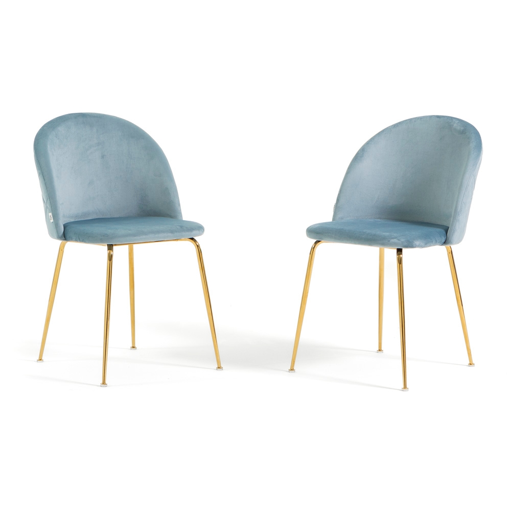 RATTATAN Set aus 2 Innenstühlen aus Samt, gepolstert, mit Metallbeinen, elegantes Design für Esszimmer, Bar und Restaurant – Sara – Himmelblau/Gold
