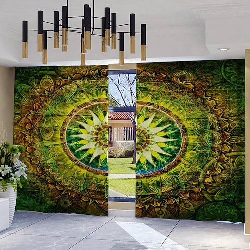 2 tende con mandala geometrico artistico, pannelli per tende da finestra in poliestere con tasca per asta, tende con motivo astratto boho, lavabili in lavatrice, adatte per soggiorno, camera da letto,