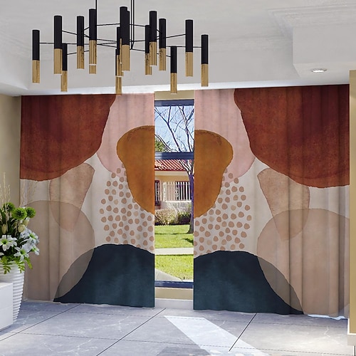 2 tende con motivi geometrici, pannelli per finestre in poliestere con tasca per asta, tende moderne con motivo astratto, lavabili in lavatrice, adatte per soggiorno, camera da letto, cucina, studio,