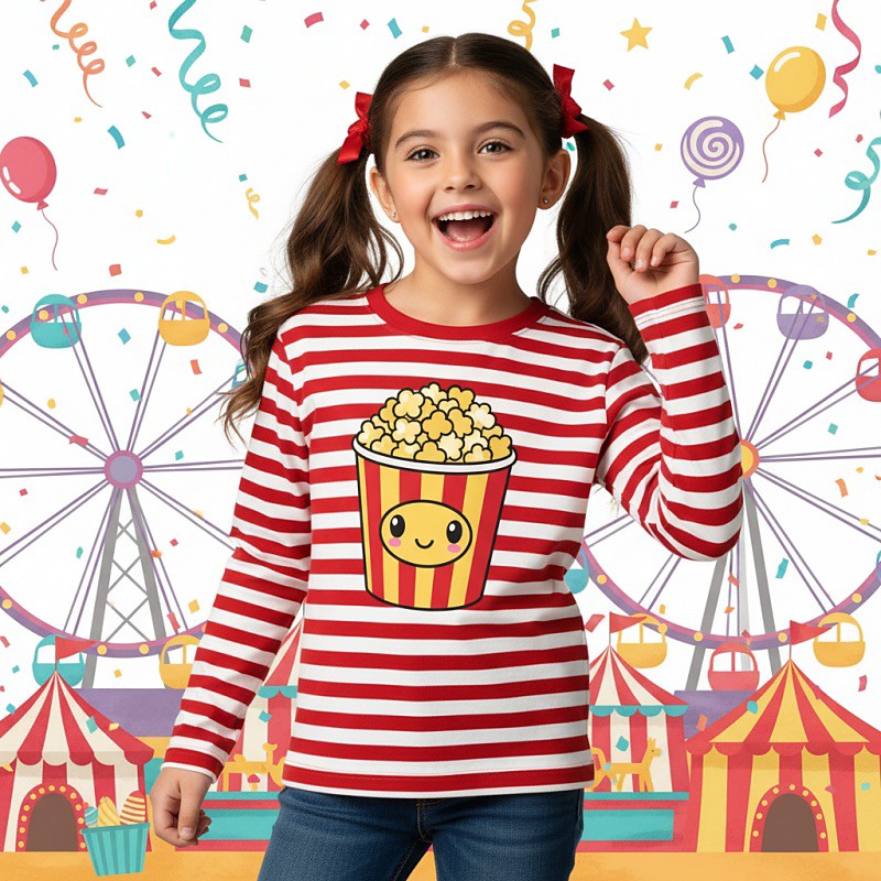 Carnival Costume 2026 Girls' 3D Graphic Striped T shirt Tee Long Sleeve 3D Print Spring Fall Sports Fashion Streetwear Kids 4-12 Years Crew Neck Casual Daily Outdoor Regular Fit