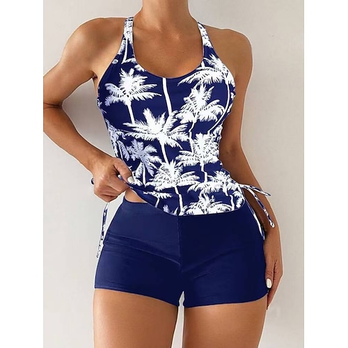 Costume da bagno due pezzi tankini da donna con pantaloni a gamba larga controllo della pancia vita alta snella senza schienale abbigliamento da spiaggia floreale grafico scollatura a U senza maniche