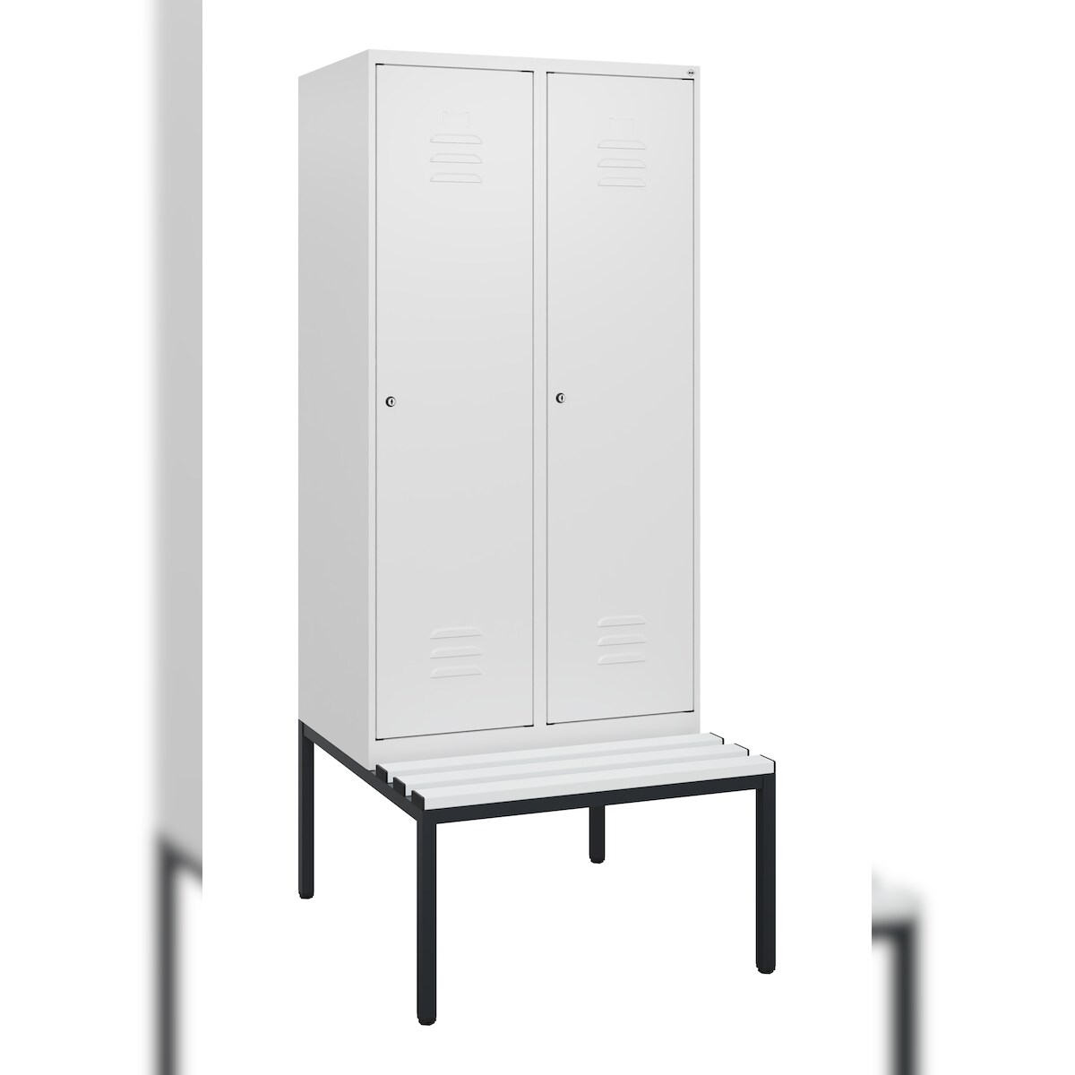 C+P Spind Classic PLUS, Kunststoff untergebaute Sitzbank, 2 Abteile, HxBxT 212x80x82cm, Zylinderschloss, Hellgrau/Fernblau von PROREGAL