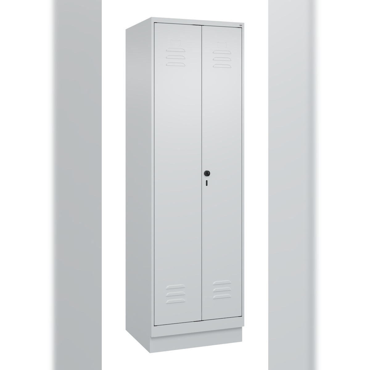 C+P Aufbewahrungs Doppel-Spind Classic PLUS, Sockel, 2 Abteile, Trennwand, HxBxT 195x60x50cm, Sicherheitsdrehriegel, Hellgrau/Hellgrau von PROREGAL