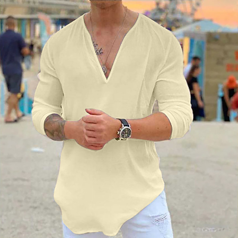 Men's Shirt Summer Shirt Beach Wear Casual Shirt T Shirt Tee Solid Color Outdoor Vacation Black White Blue Khaki Long Sleeve V Neck Summer Clothing Apparel