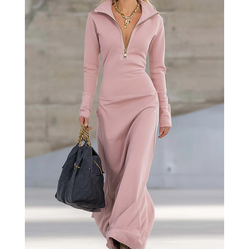 Women's Long Dress Maxi Dress Casual Dress Modern Daily Outdoor Going out Regular Fit Plain Long Sleeve Shirt Collar Black Pink Apricot Light Blue Fall Winter