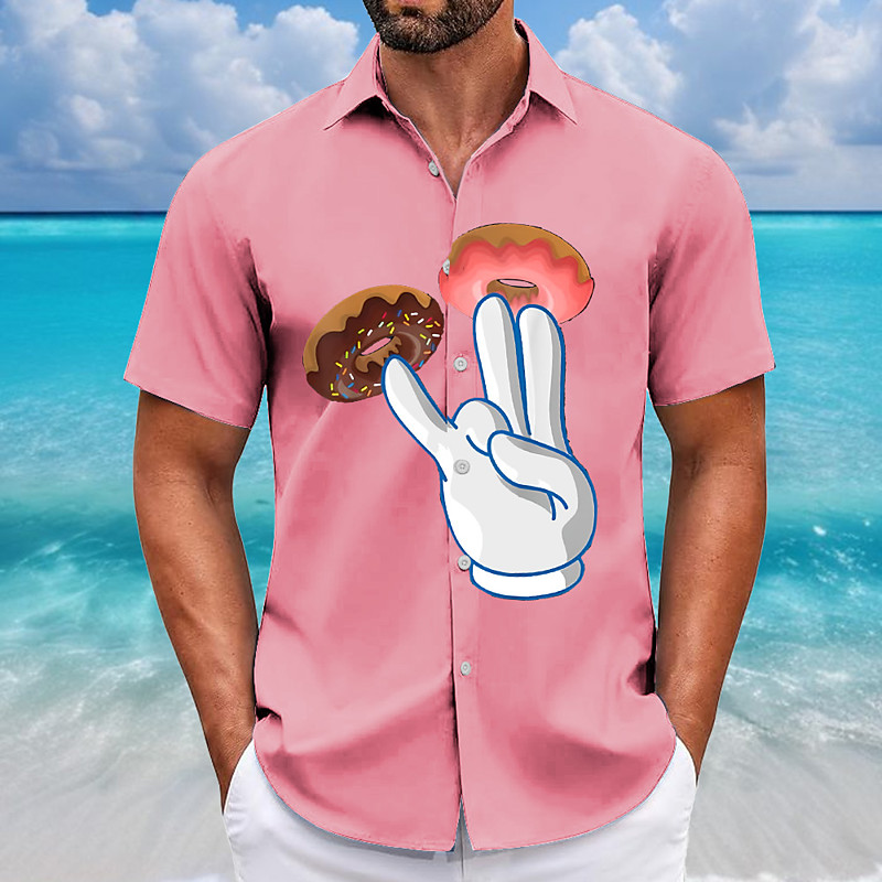 Men's Novelty Funny Donuts Shirt Summer Hawaiian Shirt Button Up Shirt Short Sleeve Hawaiian Resort Vacation Holiday Beach Wear Summer Spring Turndown 3D Print Collared Shirts Pink Blue Green