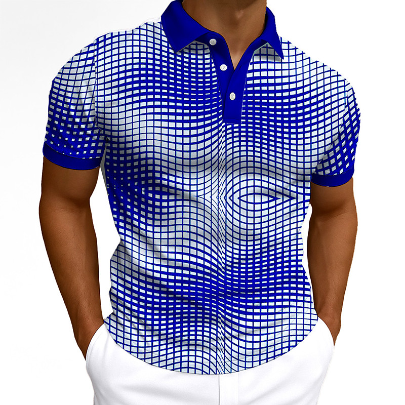 Men's Optical Illusion Geometic Polo Short Sleeve Polo Collar Casual Daily Modern Street Style Sports Outdoor Athleisure Casual Daily Buttons 3D Print Summer Robin's Egg Blue Grey Green