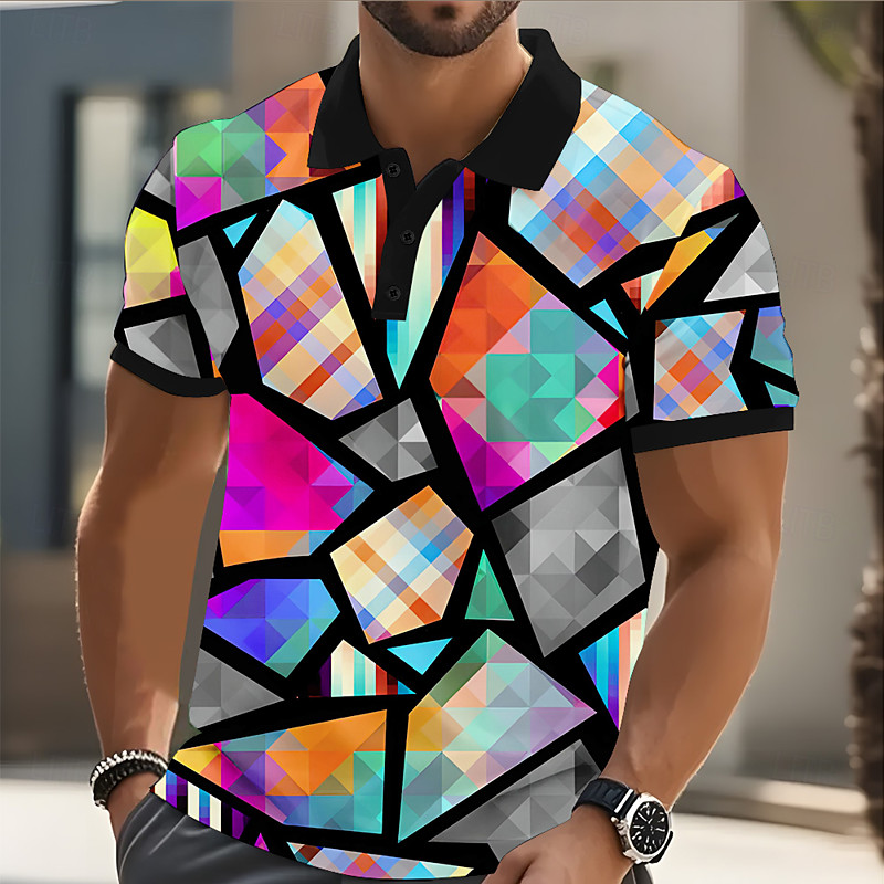 Men's Geometric Pattern Polo Short Sleeve Polo Shirts Collared Shirts Casual Athleisure Outdoor clothing Daily Wear 3D Print Buttons Summer Yellow Blue Green