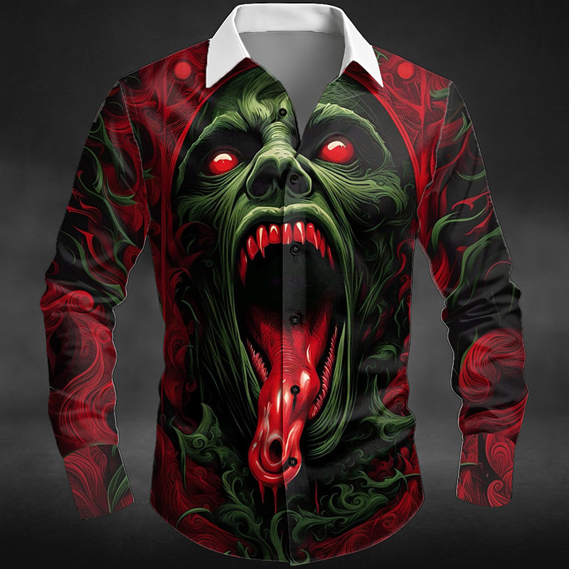 Halloween Men's Halloween Costumes Monster Shirt Button Up Shirt Long Sleeve Dark Punk Gothic Style Outdoor Holiday Summer Spring Turndown 3D Print Collared Shirts Red Blue Green