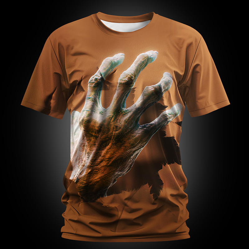Halloween Men's Optical Illusion 3D Hand T Shirt Short Sleeve T shirt 3D Print Crew Neck Shirt Exaggerated Designer Horror Party Street Holiday Blue Brown Green Summer Spring All Seasons Clothing