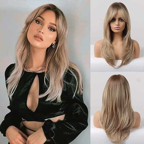 Lange gewellte Perücke, Ombre-Blondine, Mittelteil, lockiges, gewelltes Haar für Frauen, 61 cm lange blonde Perücke, natürlich aussehendes, hitzebeständiges Haar für Mädchen, täglicher Partygebrauch