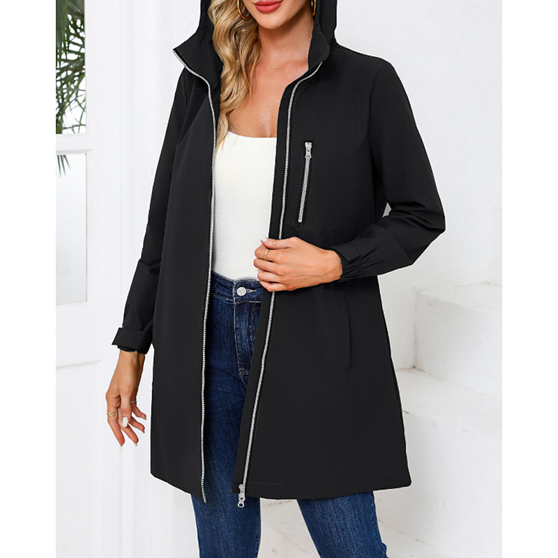 Women's Trench Coat Warm Comfortable Zipper Pocket Fashion Plain Street Going out Zipper Long Hooded Regular Fit Long Sleeve Outerwear Black Pink Sky Blue Fall Winter