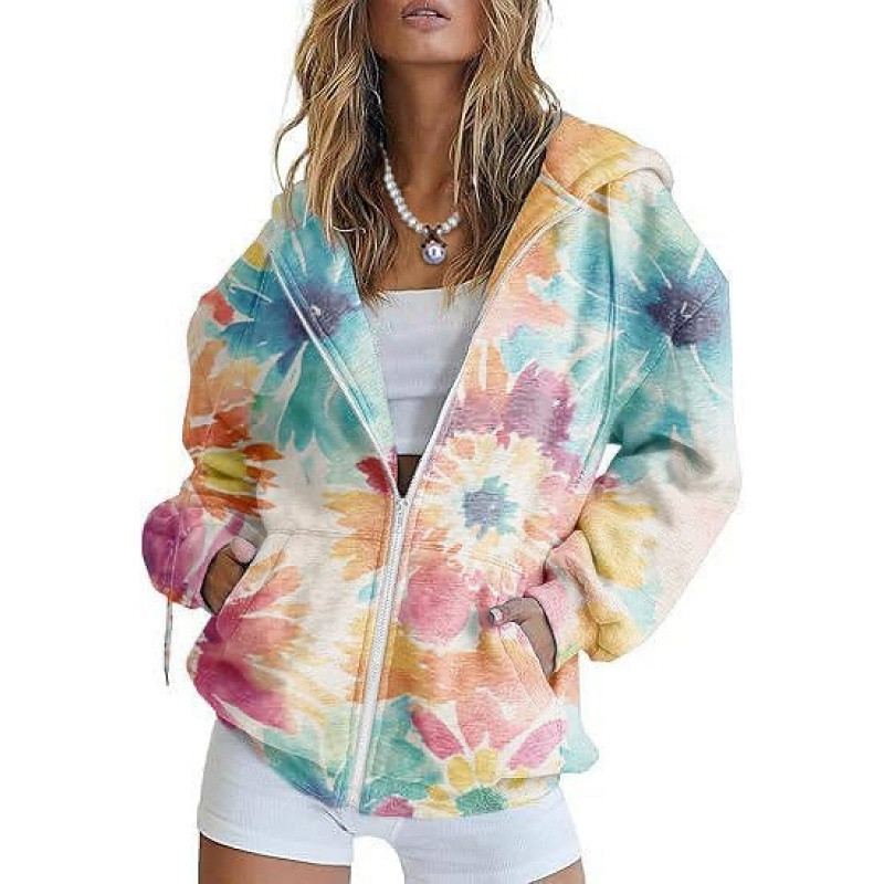 Women's Casual Jacket Hoodie Jacket Warm Comfortable Zipper Pocket Print Fashion Outdoor Flower Going out Weekend Zipper Regular Hooded Regular Fit Long Sleeve Outerwear Light Pink Black Pink Fall
