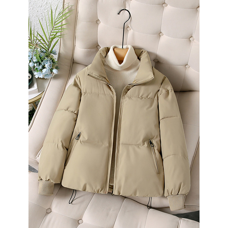 Women's Down Jacket Comfortable Breathable Zipper Pocket Casual Plain Vacation Street Casual Daily Wear Zipper Short Turndown Regular Fit Long Sleeve Outerwear Black White Khaki Spring Fall