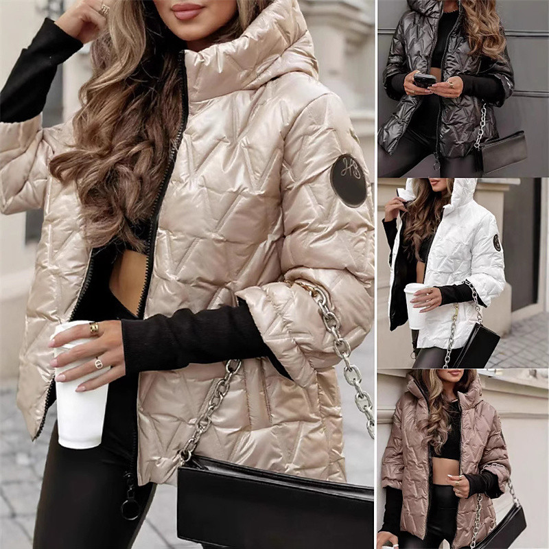 Women's Down Jacket Puffer Jacket Quilted Jacket Warm Comfortable Zipper Pocket Fashion Casual Plain Street Daily Wear Going out Zipper Regular Hooded Regular Fit Long Sleeve Outerwear Black White