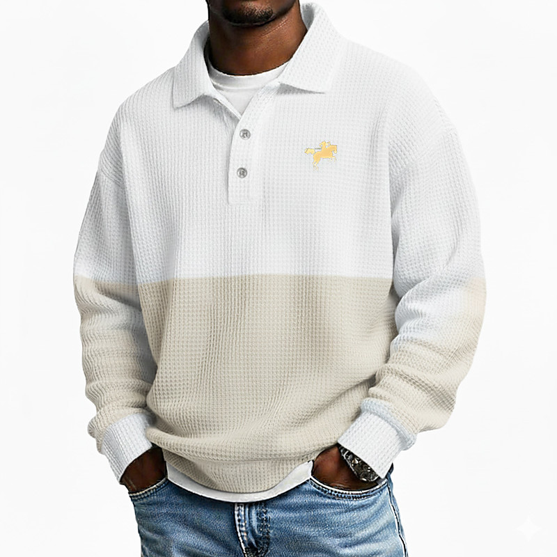 Men's Linear Waffle Polo Shirts Golf Shirt Long Sleeve Polo Shirts Collared Shirts Casual Outdoor Office Dailywear Buttons 3D Print Spring Fall Winter Black White Blue