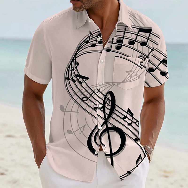 Men's Musical Notes Shirt Summer Shirt Button Up Shirt Short Sleeve Fashion Casual Daily Music Festival Summer Spring Turndown 3D Print Collared Shirts Front One Pocket Blue White Pink Khaki