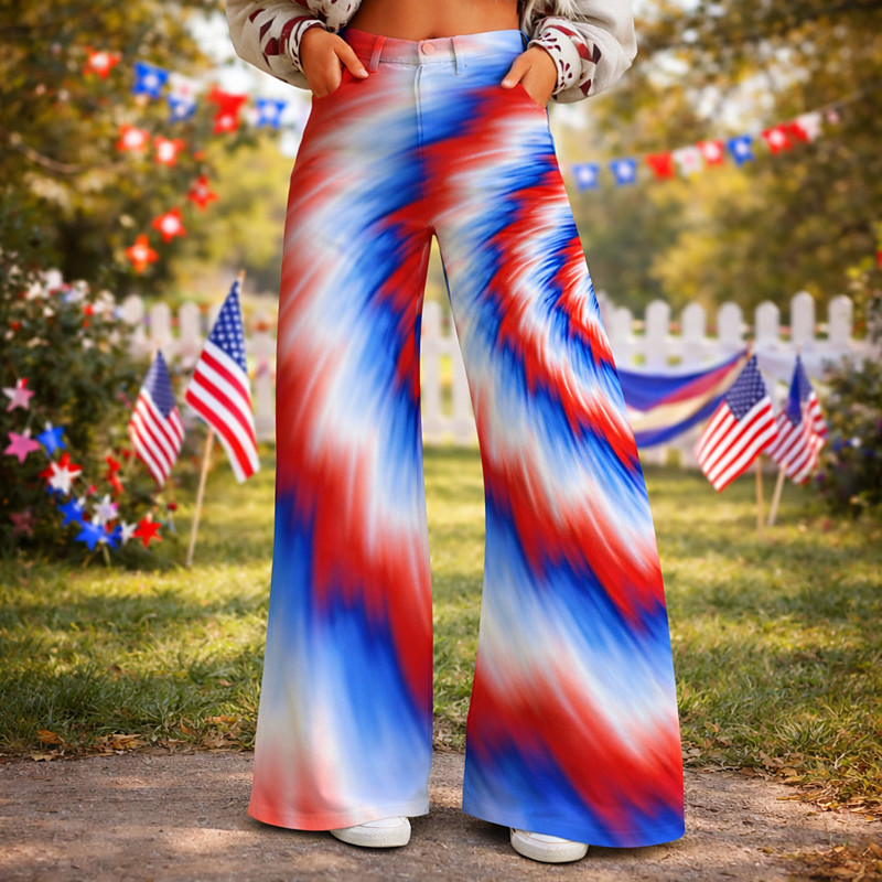 Retro Vintage 1970s Pants Wide Legged Pants Hippie Disco High Waist Stars USA Flag Faux Jeans Style Fancy Dress Women's 4th of July Mexico's Independence Day Casual Daily Music Festival Retro Theme
