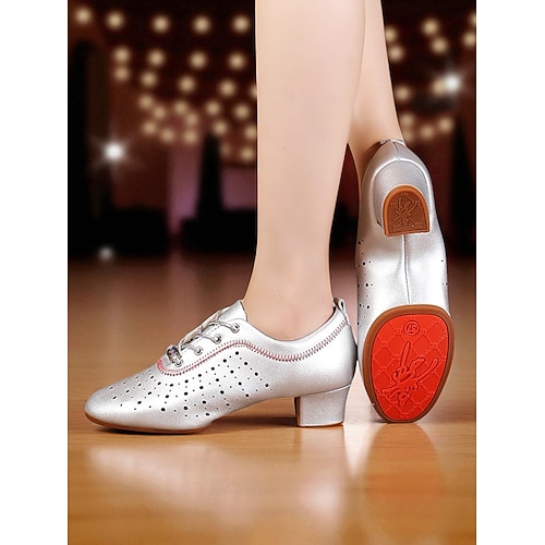 goldene Tanzschuhe zum Schnüren für Damen mit niedrigem Blockabsatz, perfekt für Gesellschafts-, lateinamerikanische und Jazz-Tanzvorführungen