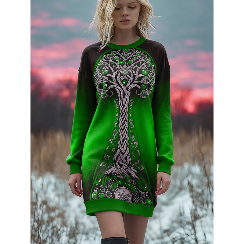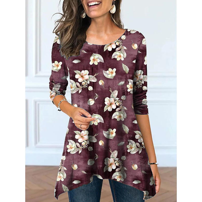 Women's Tunic Graphic Plants Elegant Vintage Fashion Long Sleeve Crew Neck Round Neck Long Tops Daily Weekend Print Grass Green Red Purple Green Summer Spring Fall Winter