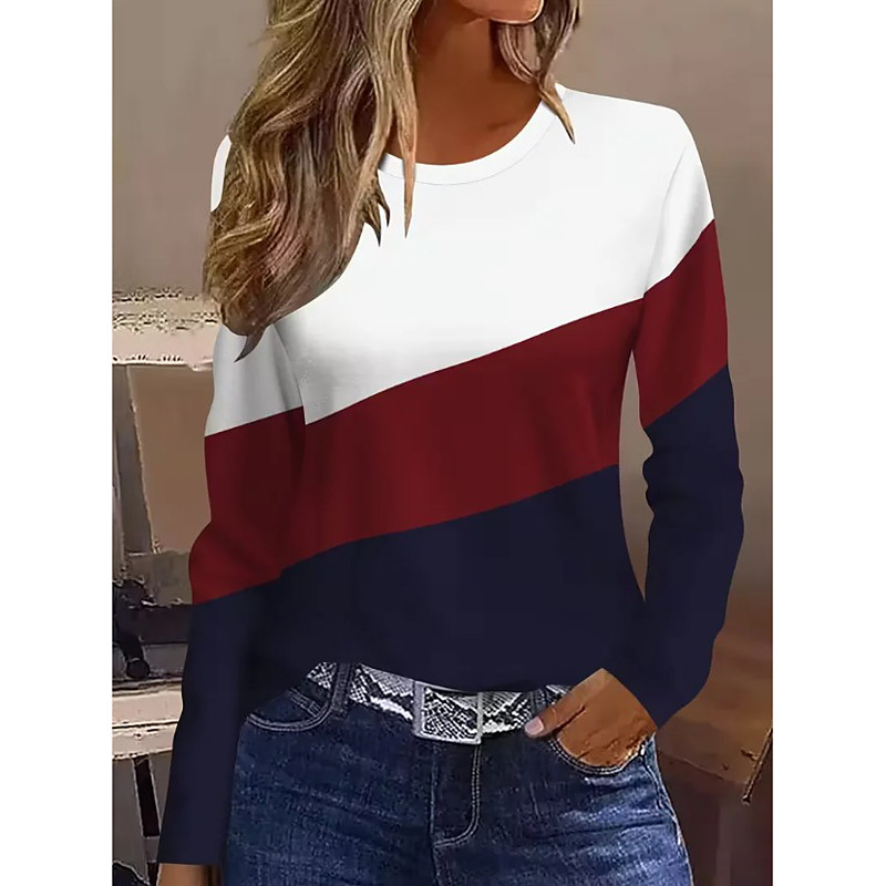 Women's T Shirt Graphic Geometric Striped Vintage Fashion Stylish Long Sleeve Crew Neck Round Neck Regular Tops Daily Weekend Print Blue Black Pink Red Summer Spring Fall