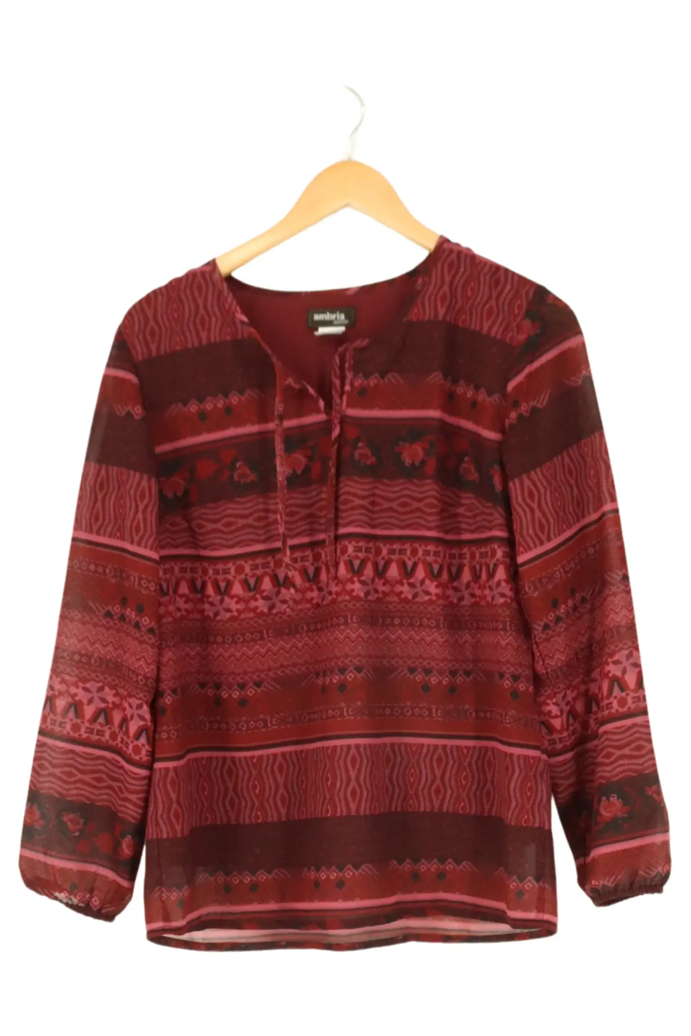 AMBRIA Bluse Rot Ethno Bohemian Gr. 36 Damen Vintage Look