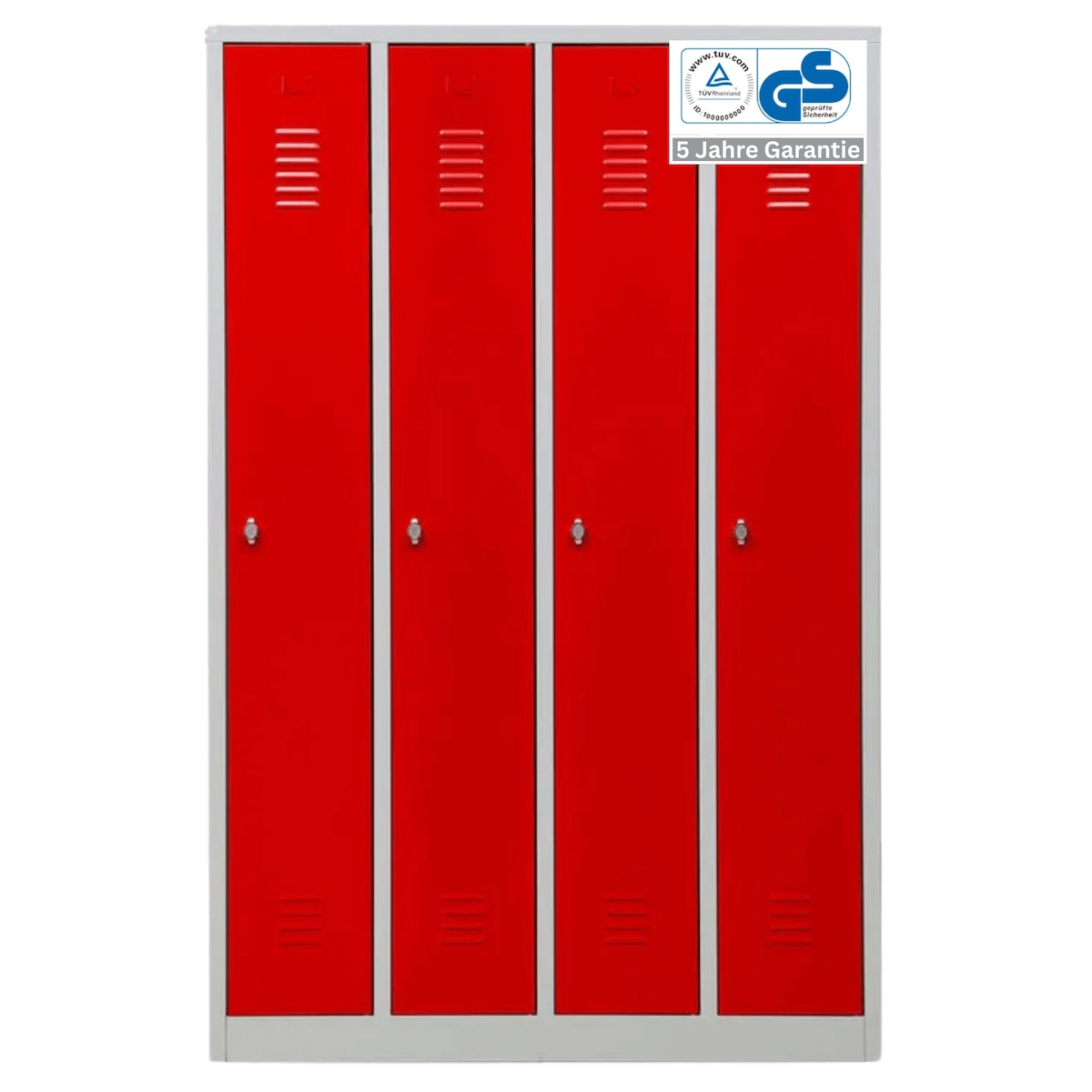 PROREGAL Garderobenspind Camel | 4-Fächer| HxBxT 180x117x50 cm | Vorhängeschloss | Grau-Rot
