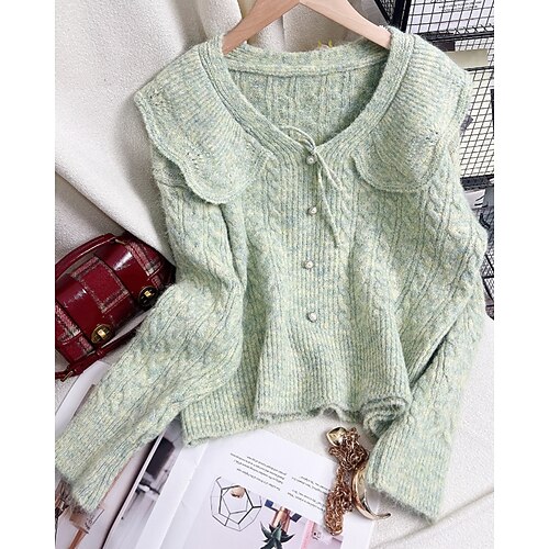 Per donna Cardigan Elegante Vintage Moda Tinta unica Collo alla coreana Lavorato a maglia Manica Lunga Top Regolari Maglia Formale All'aperto Casa Nero Rosso Primavera Autunno