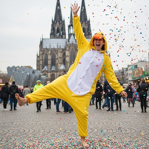 Costume di Carnevale 2026 Fantasia animale Anatra Cartone animato Carnevale Pigiama Kigurumi Costume di fantasia Pigiami e camicie da notte Caldo Comodo Adulti Scuola superiore Unisex Uomini e Donne