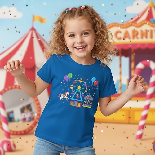 100% Cotone Costume di Carnevale 2026 Bambini Ragazze Blu Nero Bianco Cartoni animati Stampe Grafiche Maglietta Girocollo Manica Corta Vacanza Sport Outdoor Abbigliamento Quotidiano Moda Casual