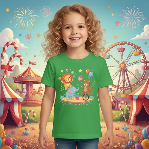 100% Cotone Costume di Carnevale 2026 Bambini Ragazze Blu Nero Bianco Grafico Animale Cartoni animati Maglietta Girocollo Manica Corta Vacanza Sport Outdoor Abbigliamento Quotidiano Moda Streetwear