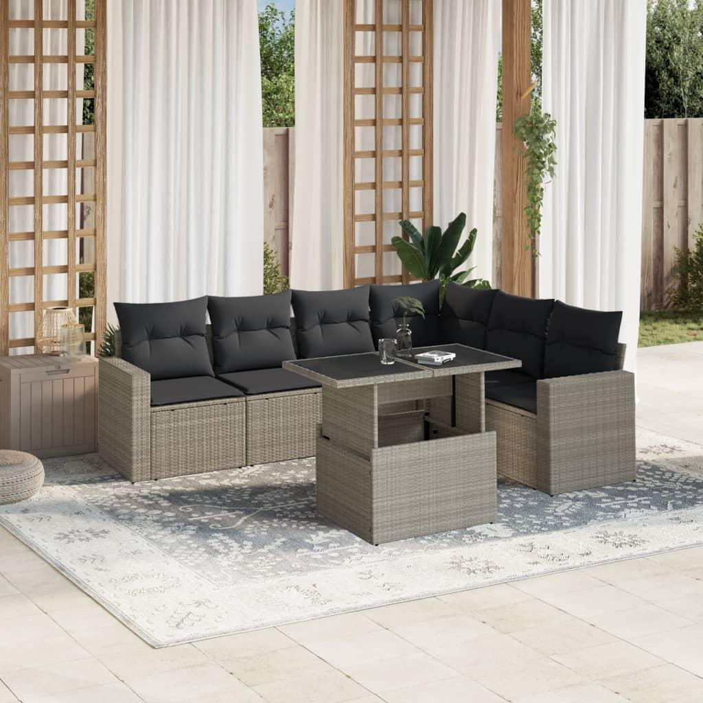 Sofasæt til haven 7 dele med hynder polyrattan sort