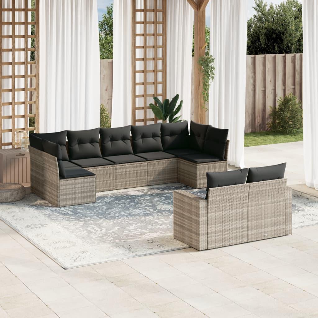 Sofasæt til haven 9 dele med hynder polyrattan lysegrå